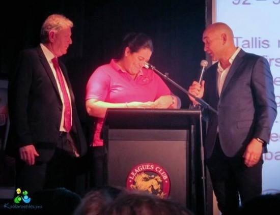 The Old Boys have this luncheon every year – they not only celebrate the Broncos achievements and their time together at the broncos, they also raise funds for charities. This year we were one of the selected charities that benefit from this day and we cannot thank Old Boy’s President, Bobby Cutmore and the Old Boys enough. Not only were we the VIP guests of the luncheon, where they made us the centre of attention (literally, with our yellow balloons) they donated a massive $5000 to us. This is the single biggest donation we have ever received, when all we had to do was attend a function. You can imagine how excited we were! In fact, so overwhelmed was Leigh when called on stage to receive the cheque that she was speechless!